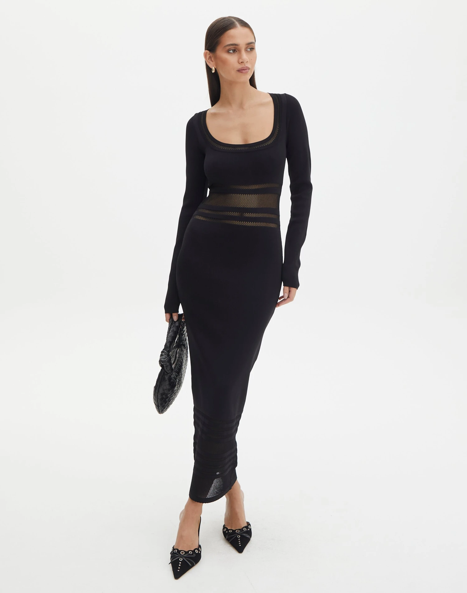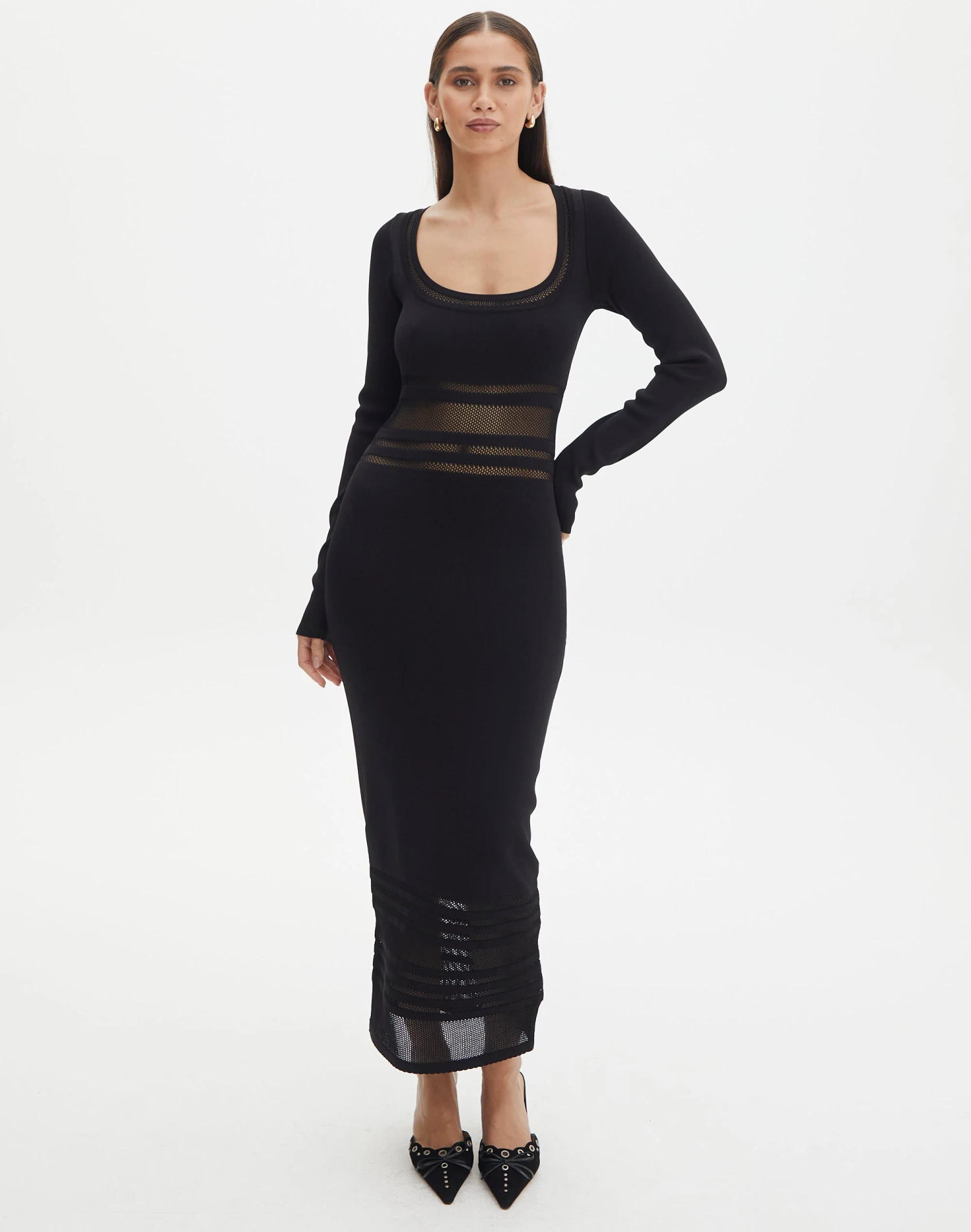 Panelled Knit Long Sleeve Maxi Dress