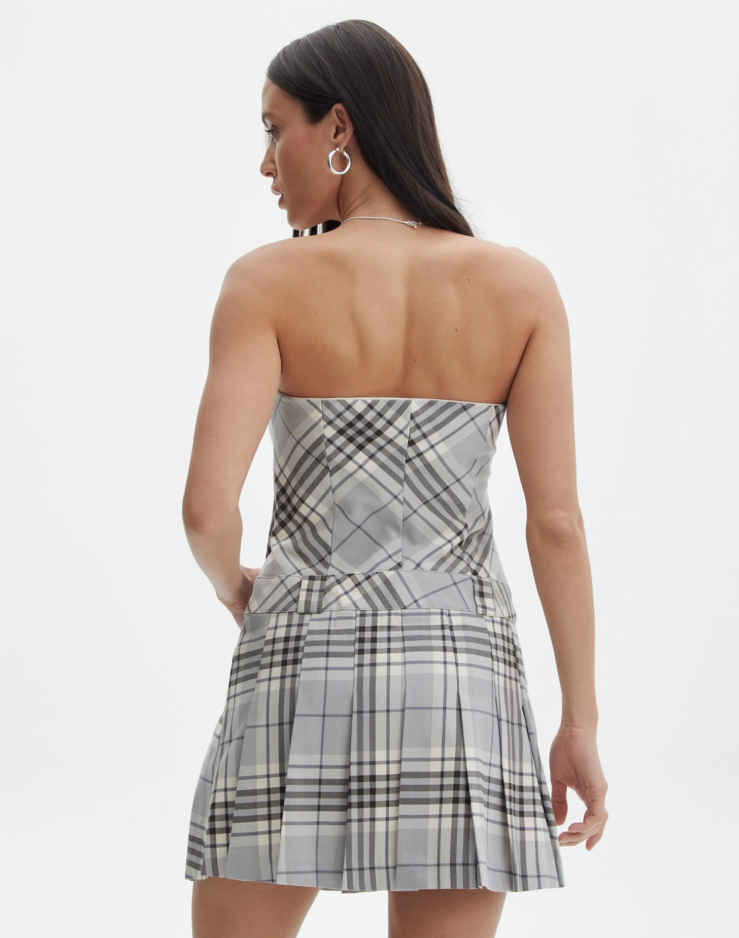 Be the first to review “Strapless Pleated Check Mini Dress” Cancel reply
